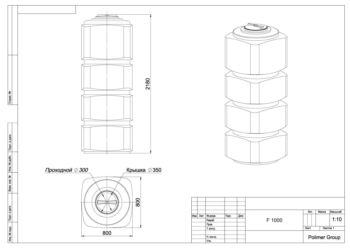 - Емкость прямоугольная F 1000 (Polimer Group TF1000S13, 1000 л., цвет: синий)