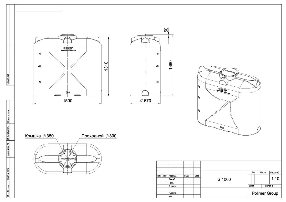 - Емкость прямоугольная S 1000 (Polimer Group TS1000S2, 1000 л., цвет: зеленый)